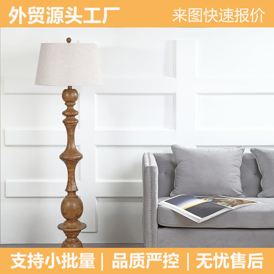 Lampu Lantai Hangat Seni Kain Gaya Amerika Pola Kayu Imitasi Lampu Tempat Tidur Kamar Tidur Superior Ruang Tamu Lampu Lantai Lintas Batas