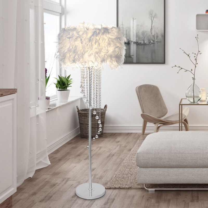 Lampu bulu K9 lampu lantai rumbai kristal, lampu dekorasi kamar tidur jaring merah jangkar suasana romantis lampu Lantai lampu kristal