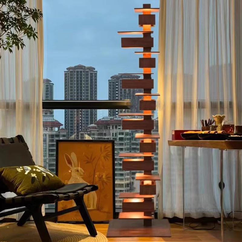 Lampu Lantai Kayu Solid Retro Gaya Jepang Lampu Ruang Tamu Villa Alpine Air mengalir Lampu Meja Tempat Tidur Kamar Tidur Desain Superior