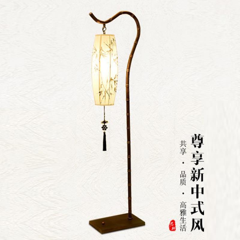Lampu lantai vertikal bambu gaya China, lampu pelindung mata belajar retro Zen ruang teh gaya Tiongkok sederhana