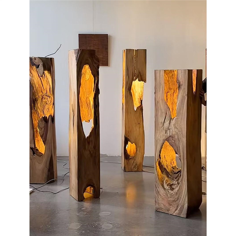 Lampu Lantai Angin Jiji Lampu Hias Kayu Berlapuk Ornamen Retro Kayu Solid Lampu Gaya Berdiri Tua Kreatif Tunggul Pohon di Homestay