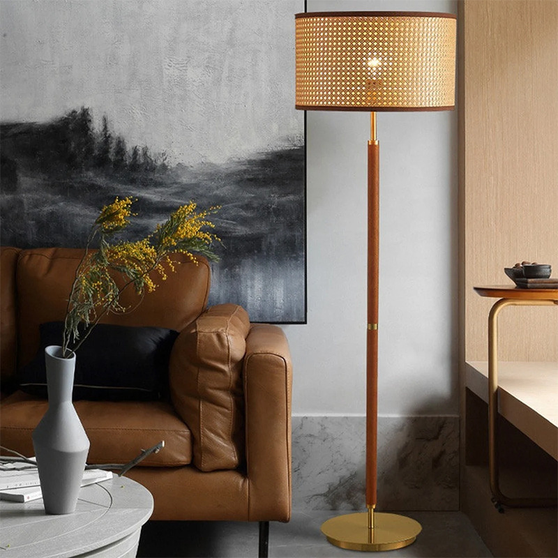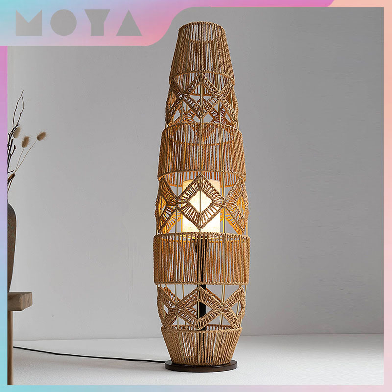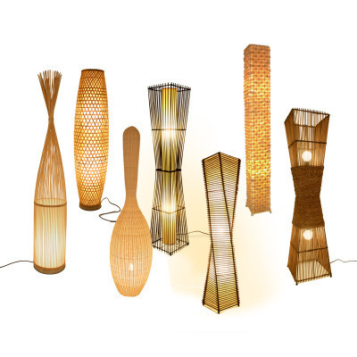 Lampu lantai ruang tamu rotan kreatif Tiongkok, lampu Lantai berdiri anyaman bambu rotan dekorasi ruang teh Asia Tenggara