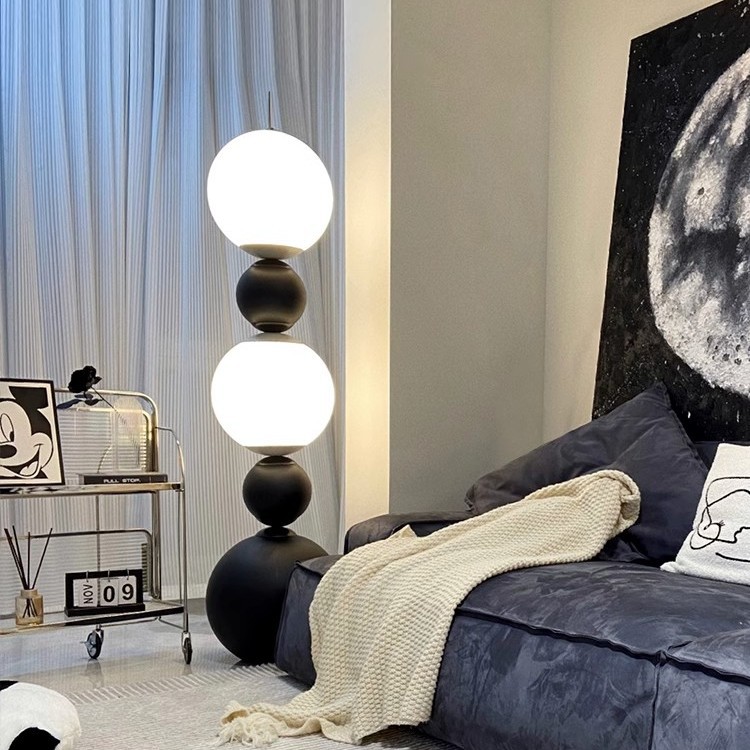Desainer Lampu Lantai Lantai Abad Pertengahan Ruang Tamu Model Kamar Tidur Kreatif Warna Hitam Retro Nordik Lampu Kaca Tipe Vertikal Tiga Kepala