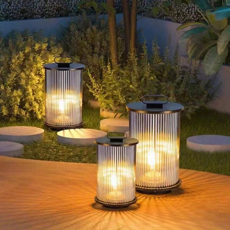 Lampu Taman rumput luar ruangan, lampu lanskap teras vila lampu lantai tenaga surya tahan air lampu malam berkemah luar ruangan portabel