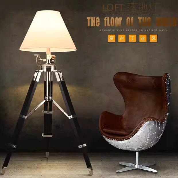 Lampu lantai kayu tripod retro Amerika, lampu lantai kayu solid untuk ruang belajar dan ruang tamu, lampu lantai LED