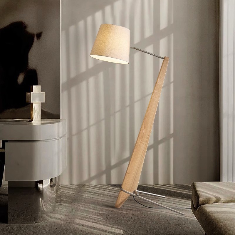 Lampu lantai Nordic retro solid patung kayu lampu meja vertikal kepribadian kreatif desainer ruang tamu sofa memancing lampu
