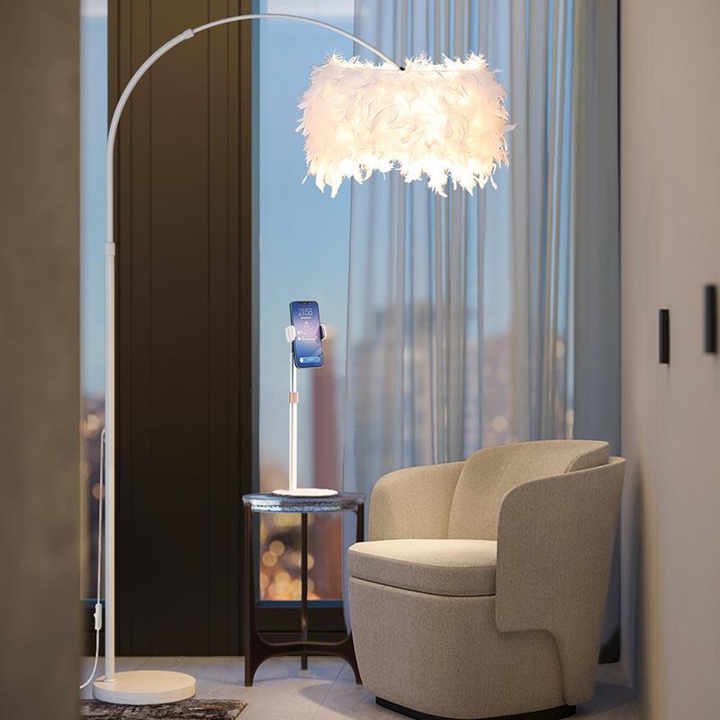 Lampu lantai bulu, cahaya minimalis modern mewah ruang tamu ruang belajar kamar tidur samping tempat tidur lampu meja vertikal Nordik cerdas remote control