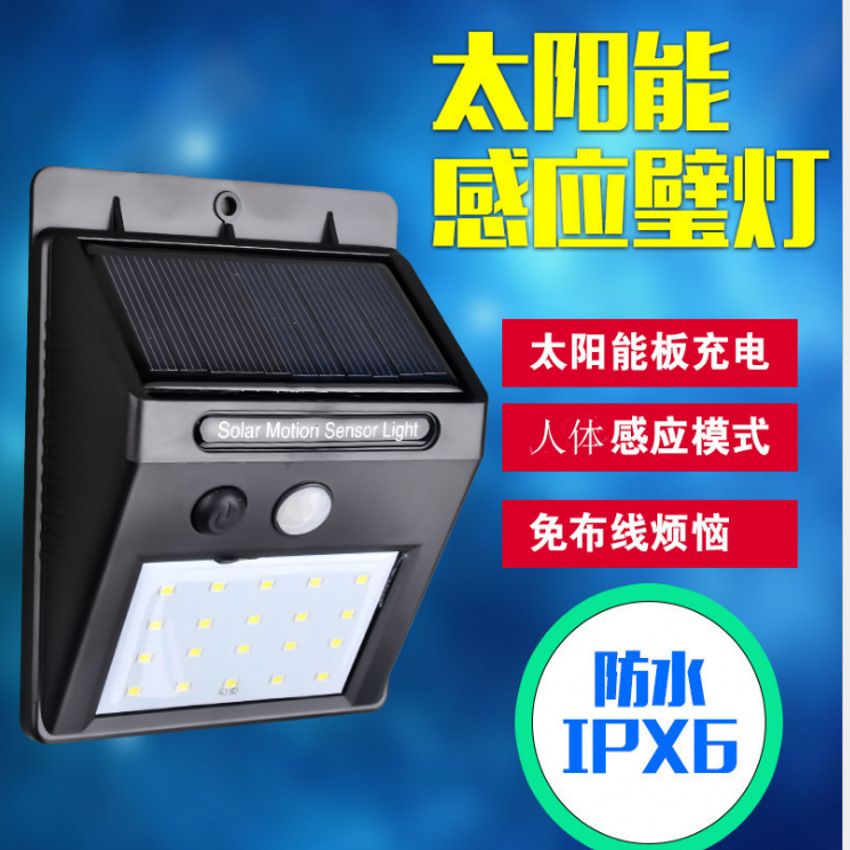 Lampu surya lintas batas Amazon, lampu sensor surya, lampu jalan terintegrasi, tahan air untuk luar ruangan, LED ultra terang, ukuran kecil