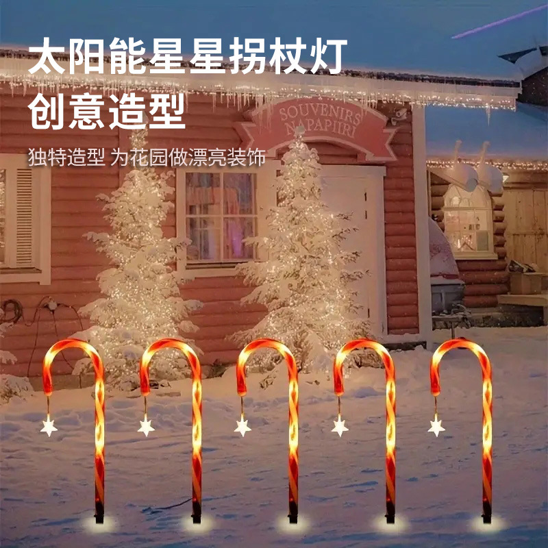 圣诞节太阳能星星糖果拐杖灯花园节日创意造型灯户外草坪地插灯