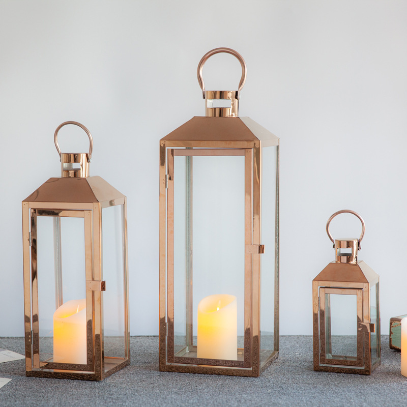 Lampu angin besi tahan karat gaya Eropa tempat lilin logam tahan angin luar ruangan tempat lilin pernikahan lembut dekorasi hotel pasokan langsung dari pabrik