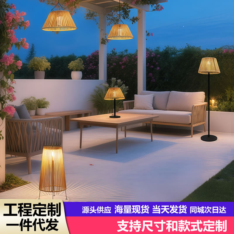 Lampu Gantung Surya Tahan Air Wireless Lampu Gantung Teras Balkon Taman Dekorasi Rotan Imitasi Isi Daya Lampu Halaman