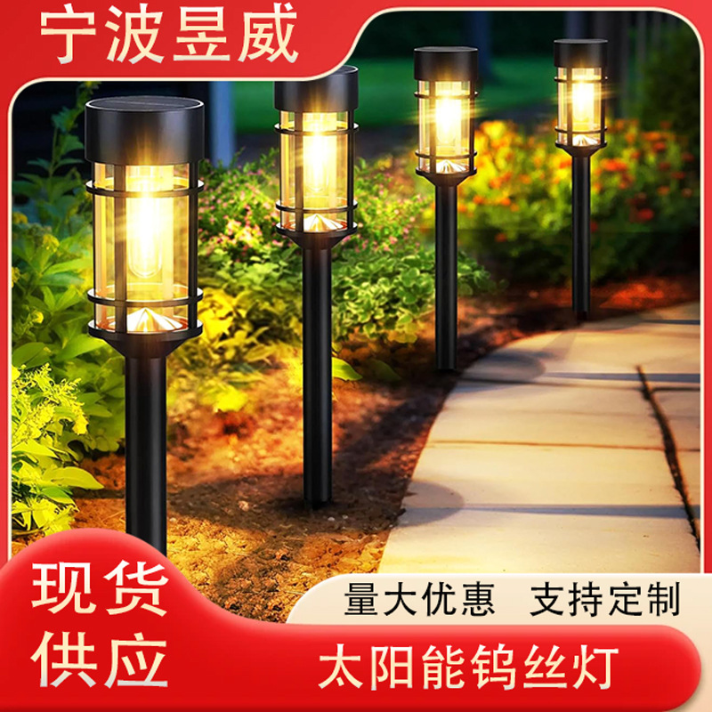 Lampu tungsten tenaga surya, lampu jalan pencahayaan luar ruangan kawat tungsten surya, halaman taman, colokan tanah, lampu lanskap, lampu kawat tungsten tahan air