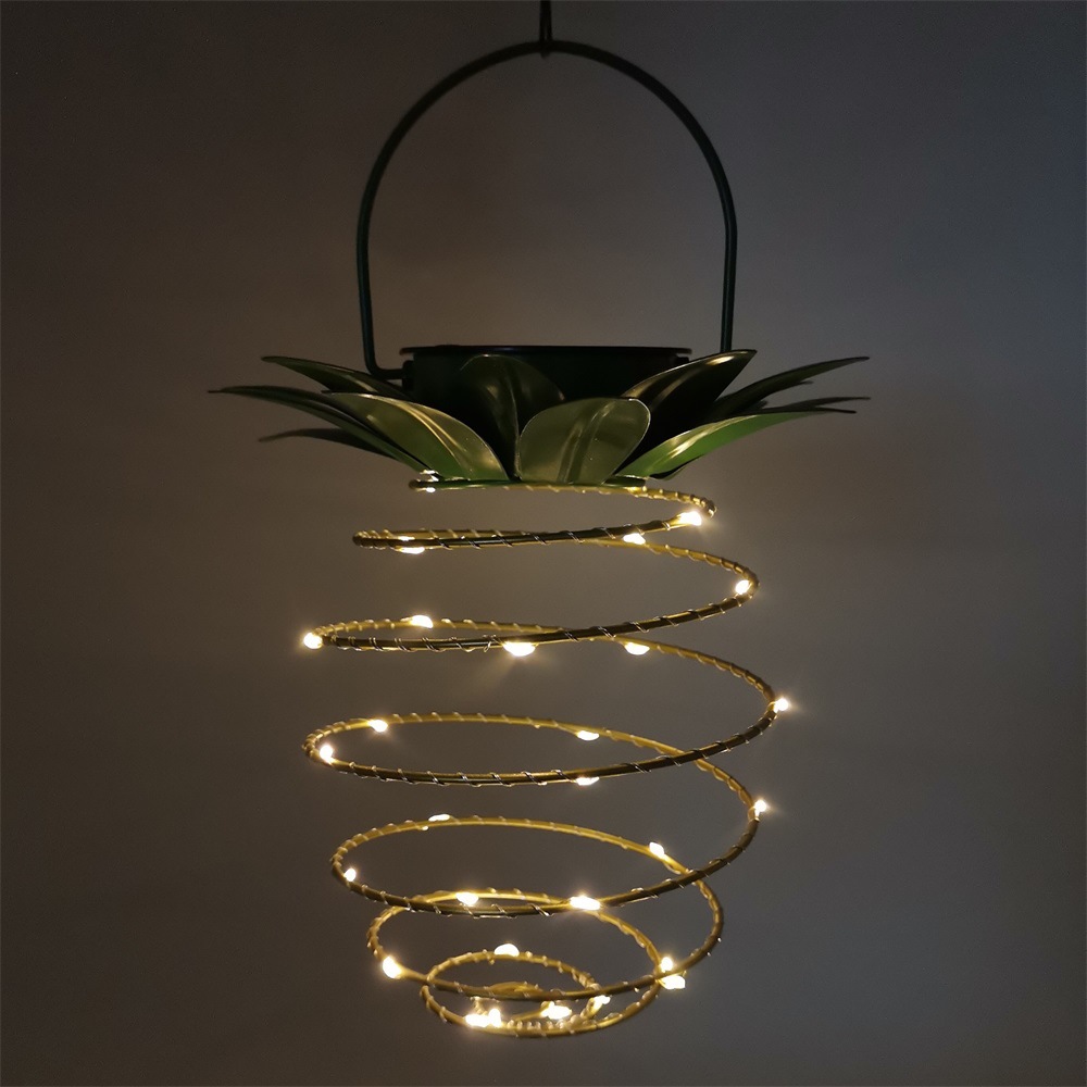 Lampu surya lampu gantung nanas kawat tembaga, lentera besi lampu taman tenaga surya Musim Semi, stok tersedia