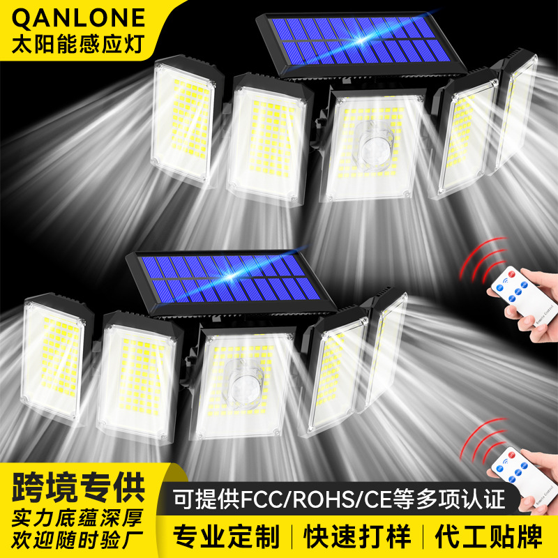 2022 Amazon lampu dinding tenaga surya baru lampu induksi tubuh manusia putar lima-kepala lampu jalan halaman tahan air luar ruangan