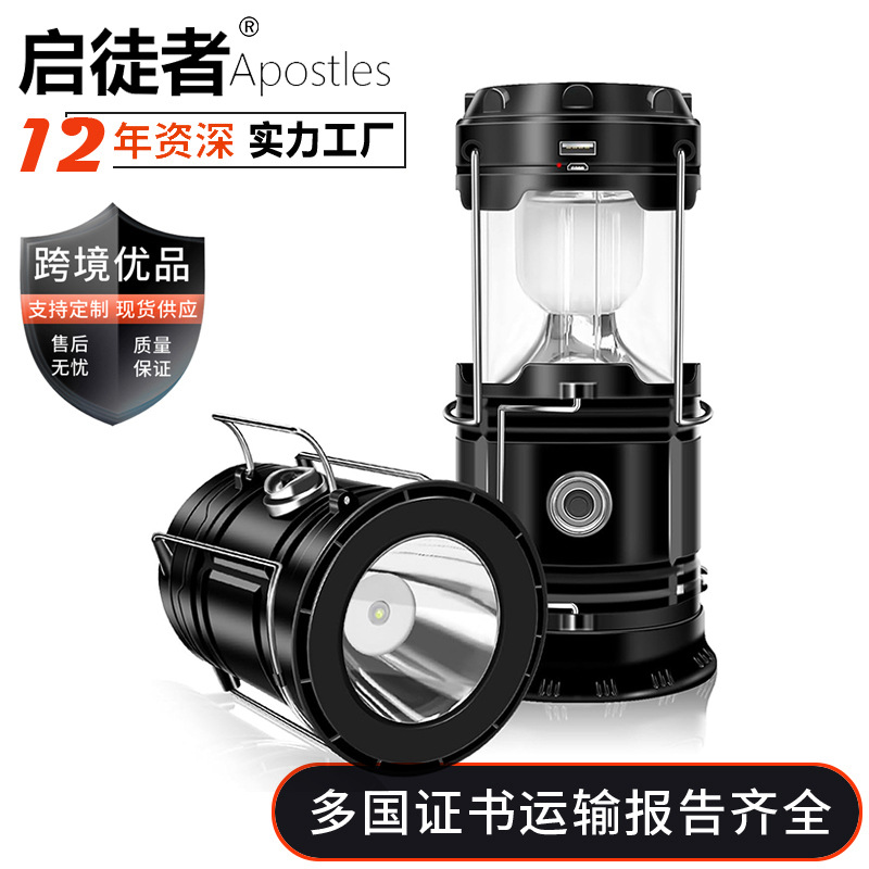 Lampu Kemah, lentera cahaya matahari portabel pengisian rumah luar ruangan multi-fungsi berkemah lampu lentera