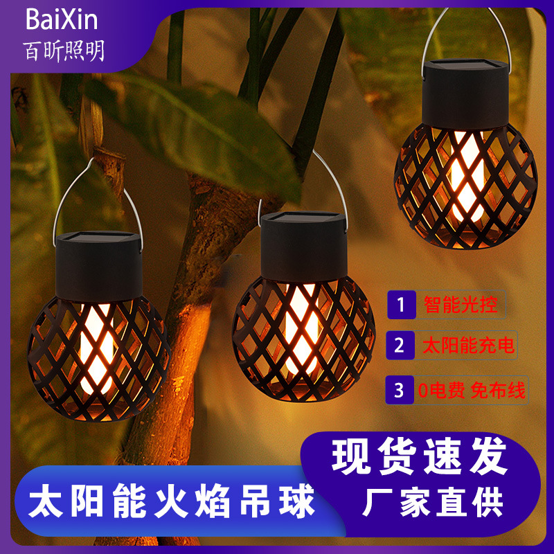 Lampu gantung bola tenaga surya, lampu hias balkon luar ruangan, tahan air halaman, lampu simulasi api