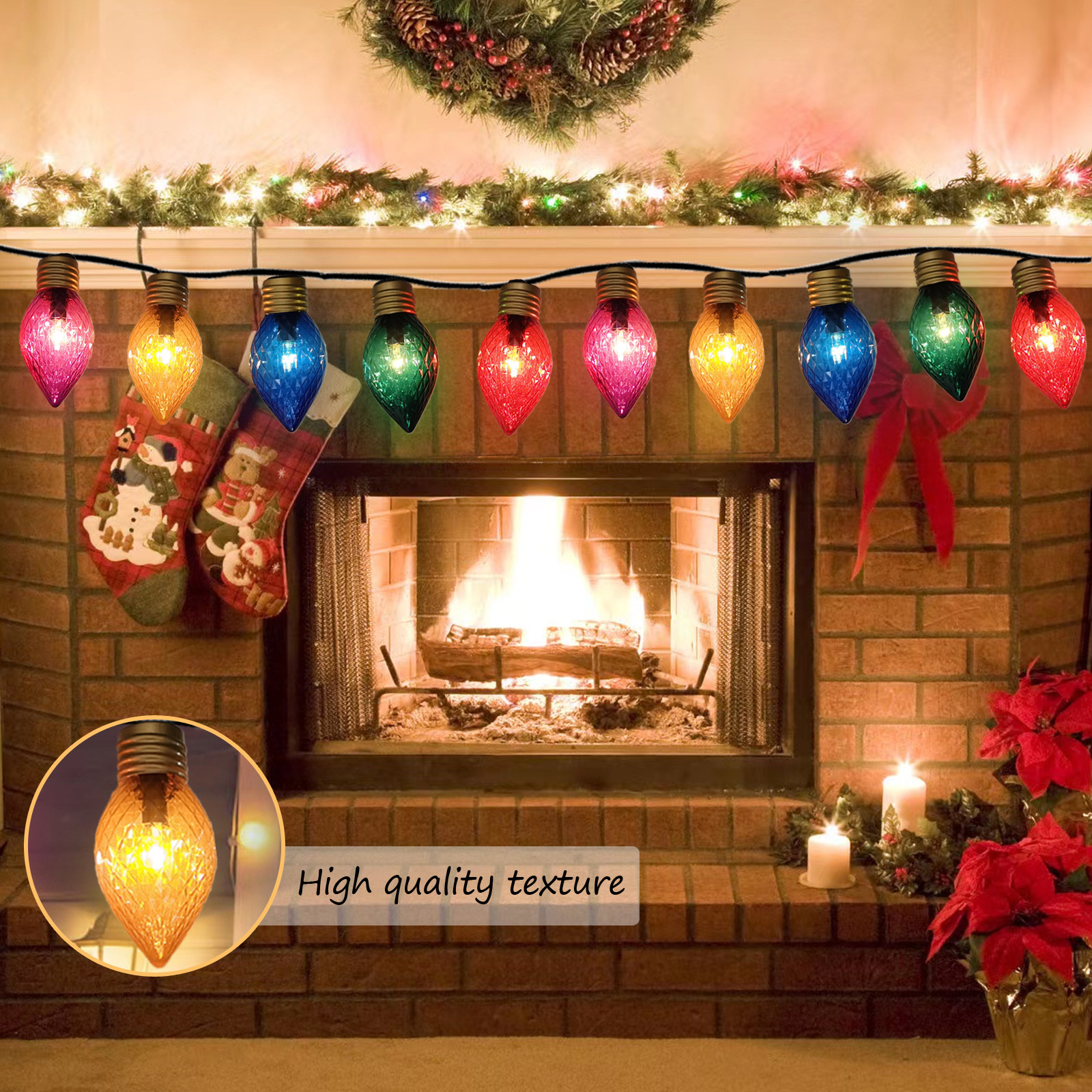 C7 10 lampu tali lampu tungsten dekorasi Natal liburan luar ruangan lampu dekorasi pohon plastik lampu Natal kartun