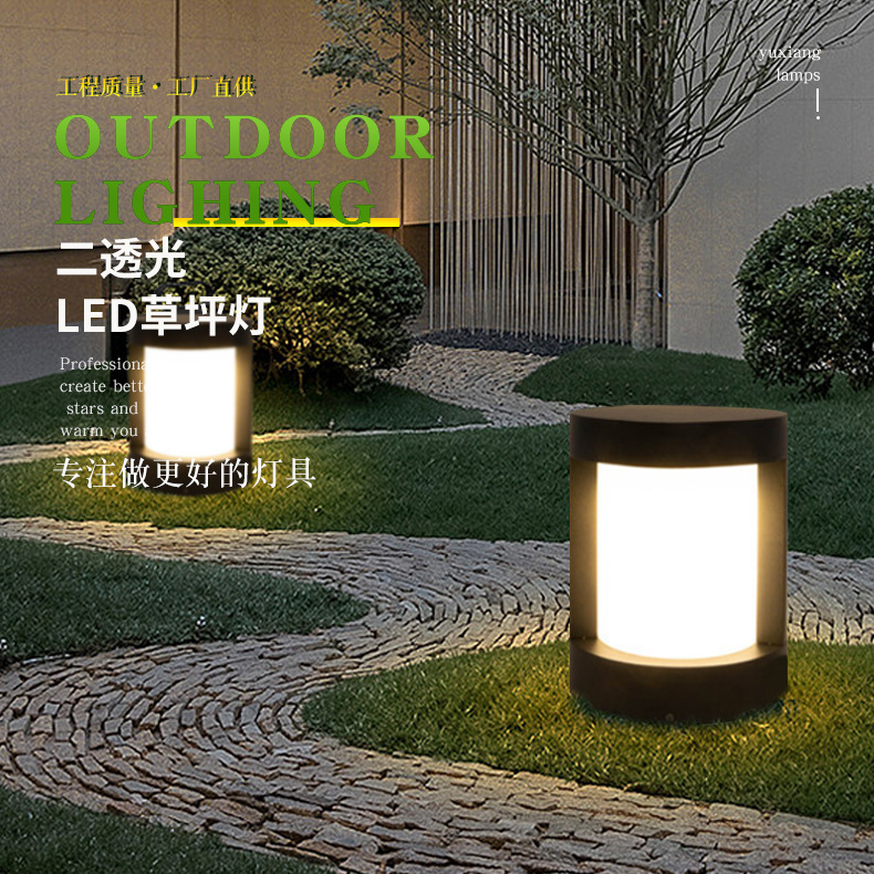 Lampu rumput tenaga surya dua transparan, lampu pilar led dinding bundar sederhana luar ruangan villa taman komunitas