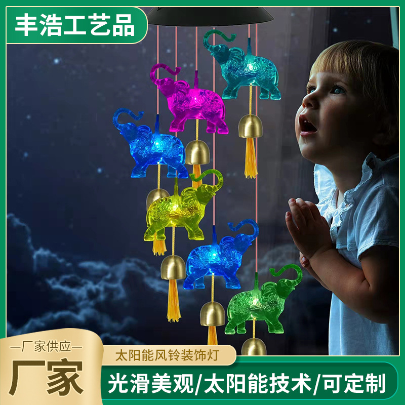 Baru LED lonceng angin surya gajah dengan lonceng angin luar ruangan taman lanskap lampu hias
