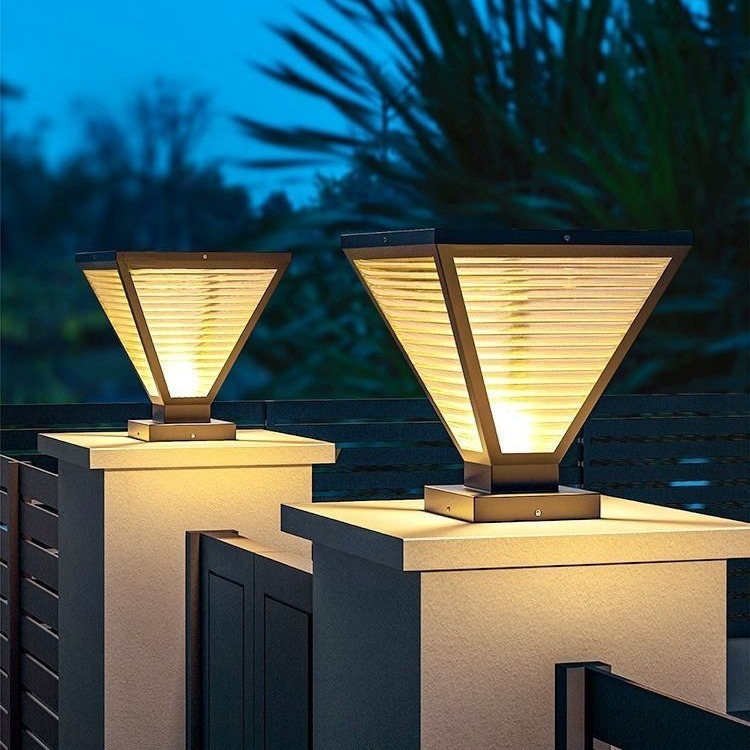 Lampu pilar surya, lampu pilar tahan air luar ruangan taman, lampu pilar pintu Vila untuk dinding pagar tenaga surya