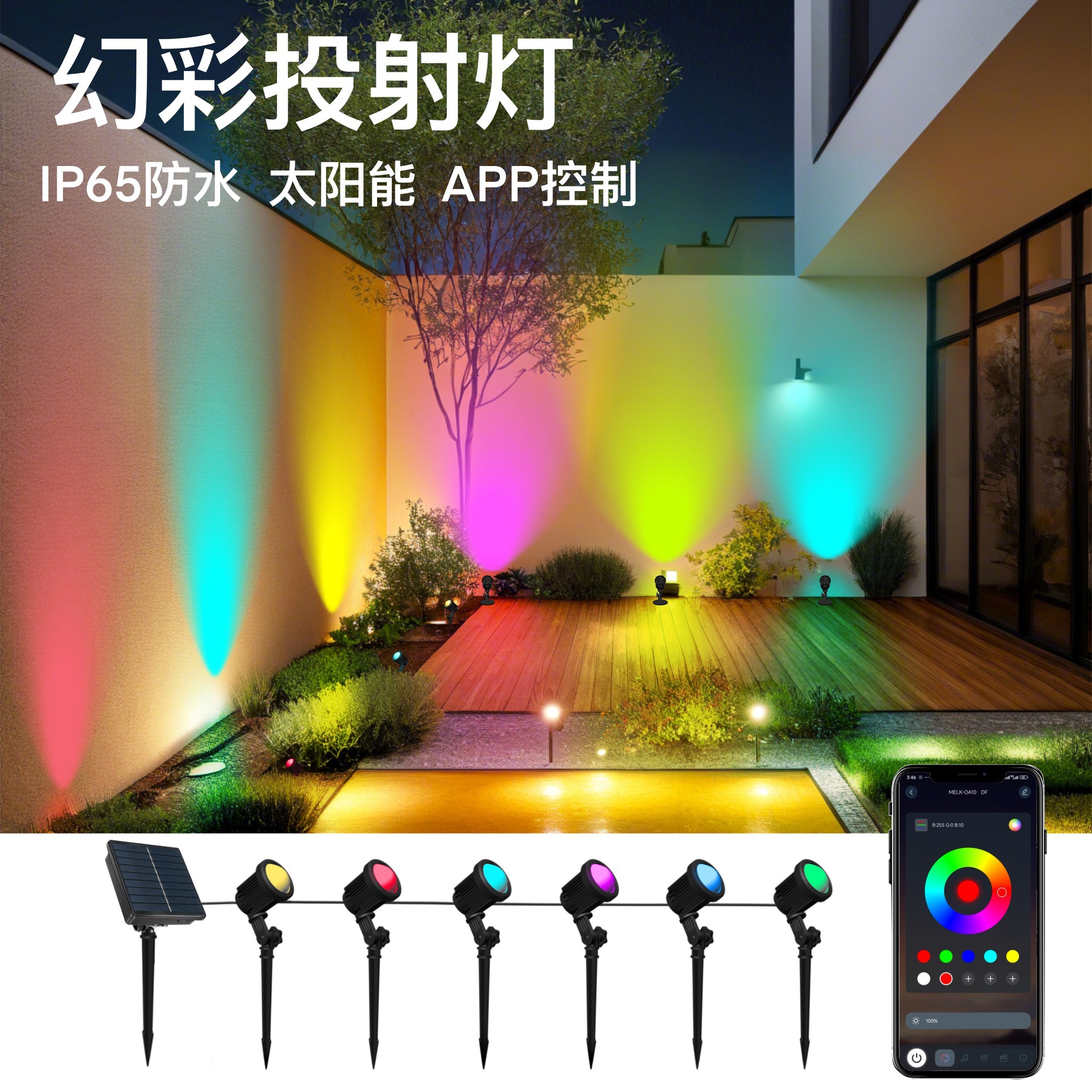 RGB Lampu Tanah Surya Lampu Proyektor Warna-warni Luar Ruangan Tahan Air Lampu Halaman Lampu Natal Taman Lampu Hias