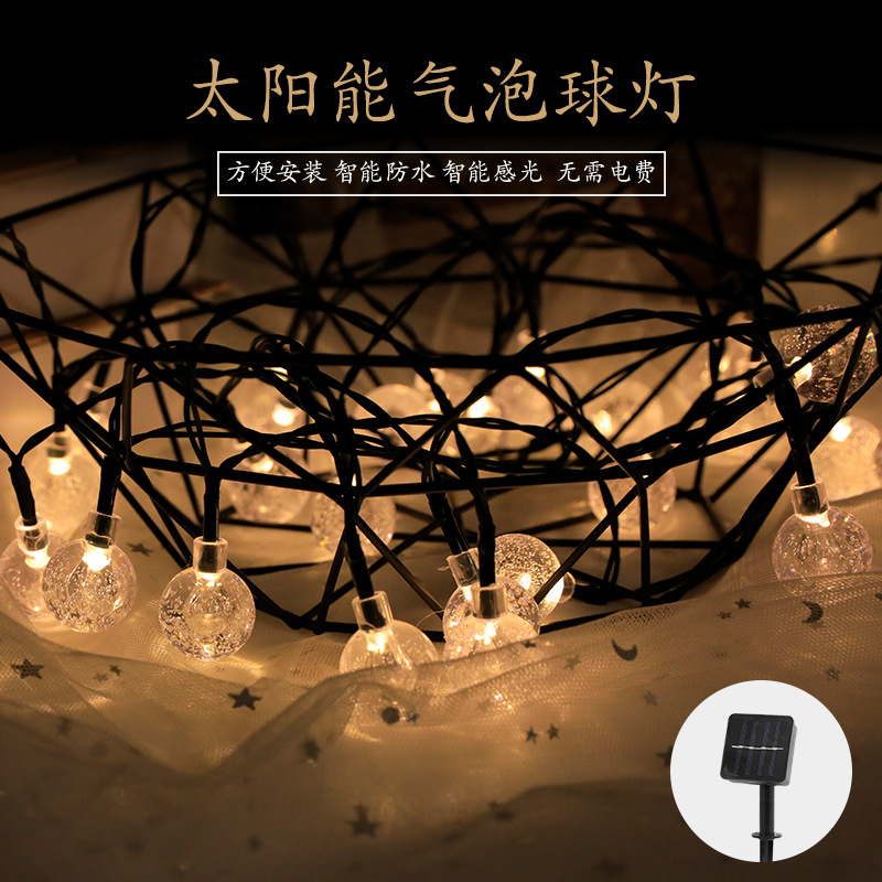 Lampu dekorasi bola gelembung lampu tali berkedip lampu warna led tenaga surya Amazon lintas batas luar ruangan tahan air lampu tali tetesan air