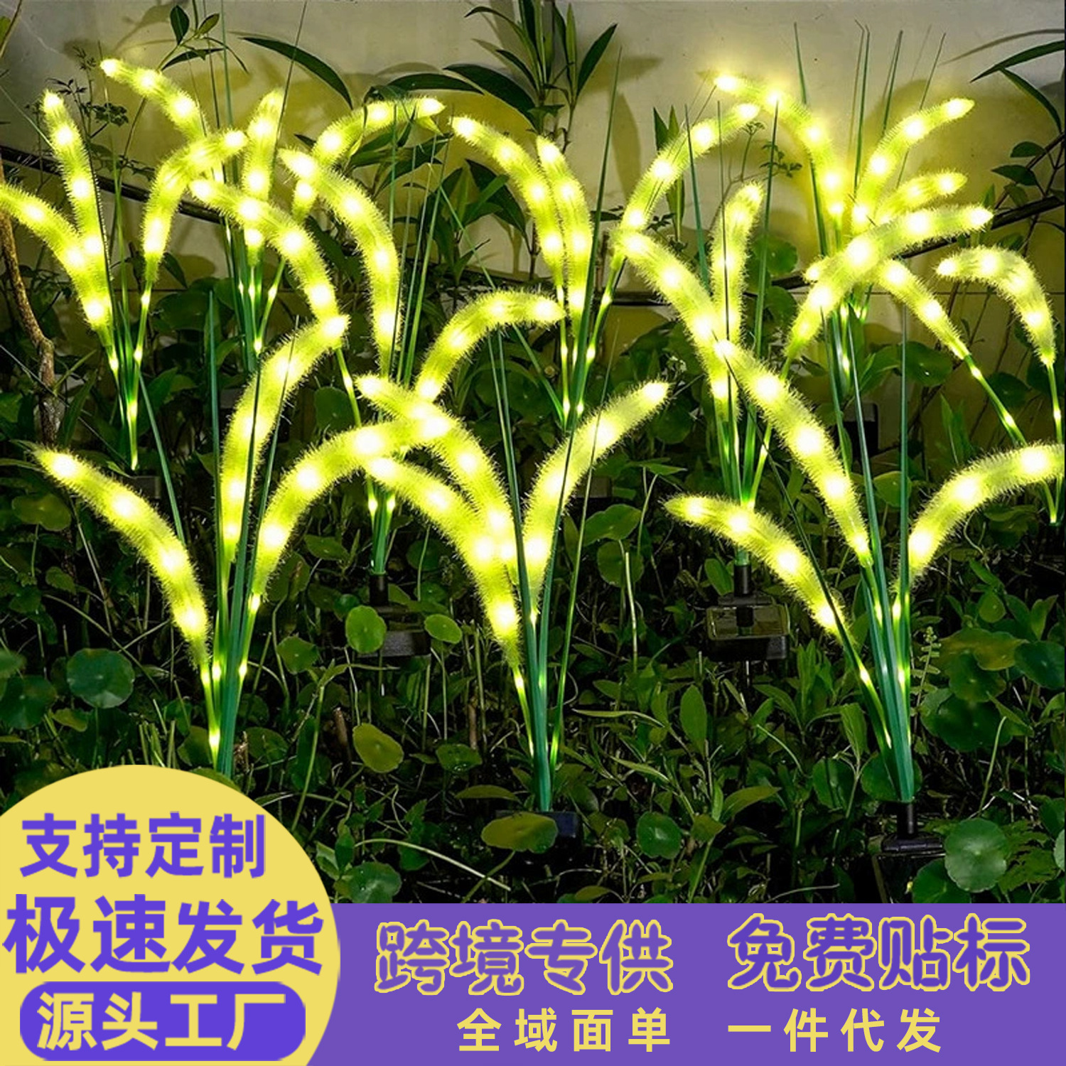 Lampu Rumput Dogtail Simulasi Tenaga Surya Lampu Reed Bercahaya LED Luar Ruangan Lampu Rumput Dekorasi Lansekap Halaman Luar Ruangan