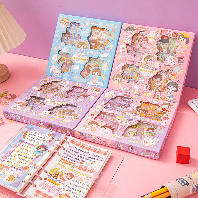 Paket Stiker Buku Pegangan Stempel Panas Stiker Lansekap Adegan Miniatur Kreatif Stiker Buku Panduan Anak-anak Lucu Kartun Hidung Kecil