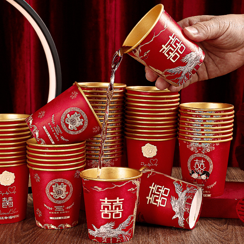一次性纸杯金箔结婚婚礼婚宴喜字水杯红色加厚婚庆茶杯子用品大全