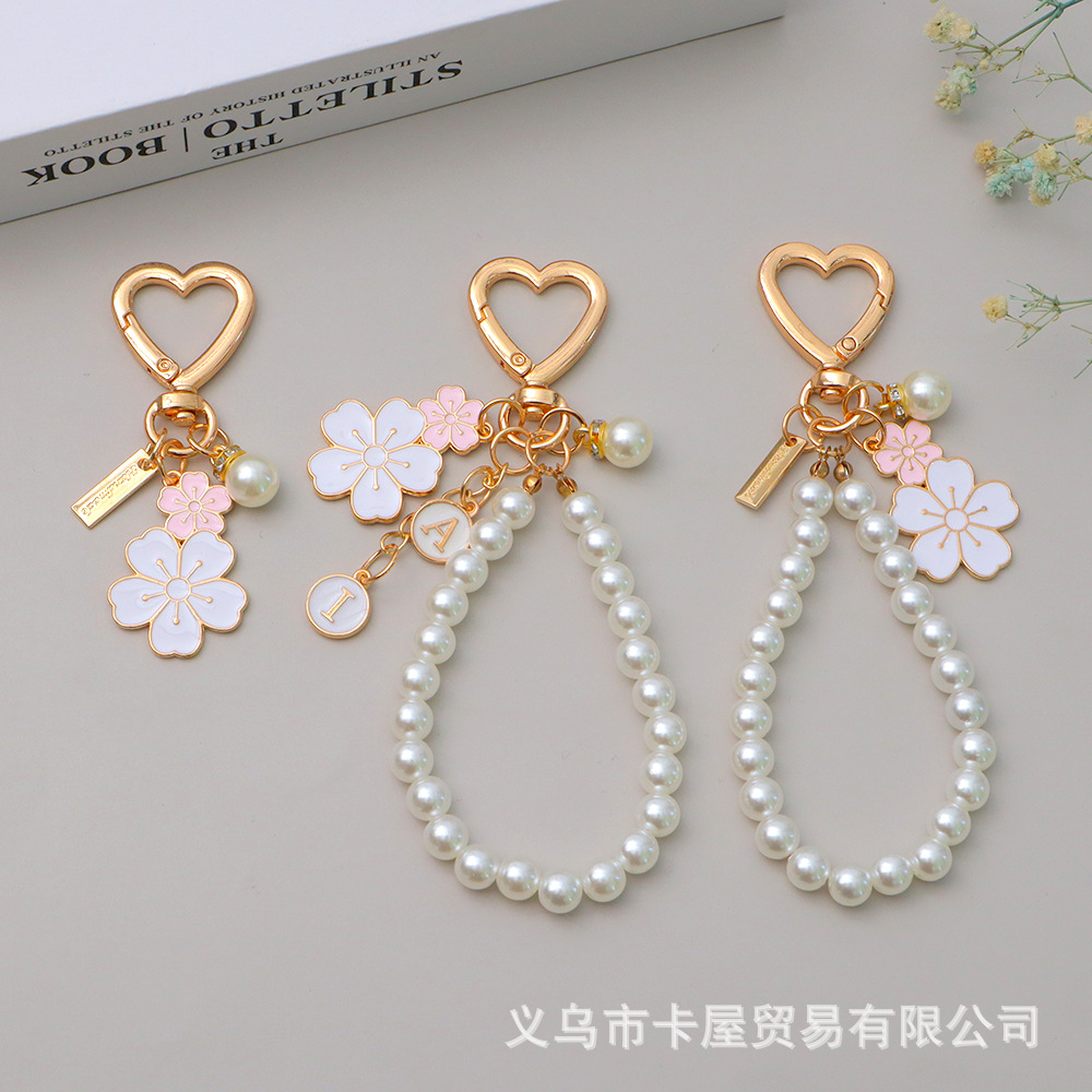 Gantungan Kunci Paduan Bunga Warna Ganda Lintas Batas Aksesori Mutiara Huruf Bunga Putih Kecil Lucu Set Tas Gantung Aksesori Earphone