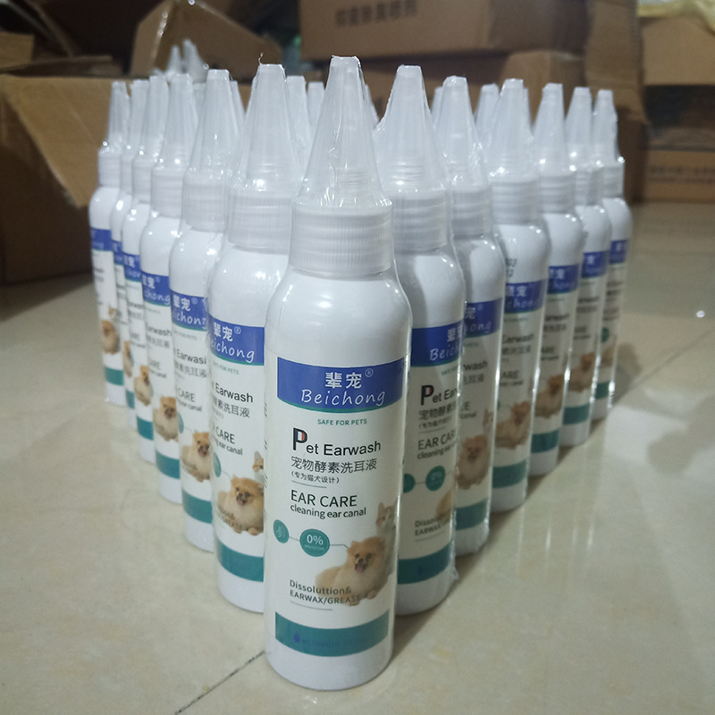 Pasokan asal grosir tetes telinga hewan peliharaan pencegahan kucing dan anjing tungau telinga Pembersih kotoran telinga 120ml agen cuci telinga