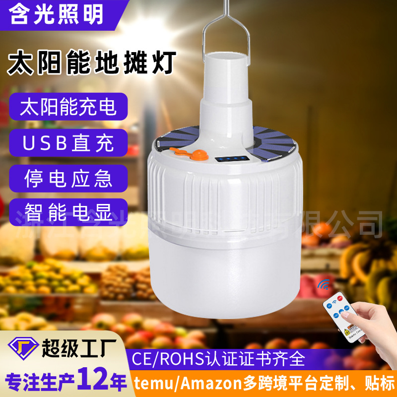 Bohlam tenaga surya isi ulang led, lampu sorot pasar malam remote control luar ruangan tahan lama