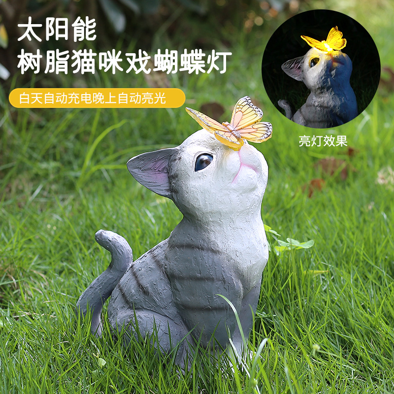 Lampu kucing tenaga surya, lampu malam tahan air dekorasi halaman luar ruangan simulasi taman hewan
