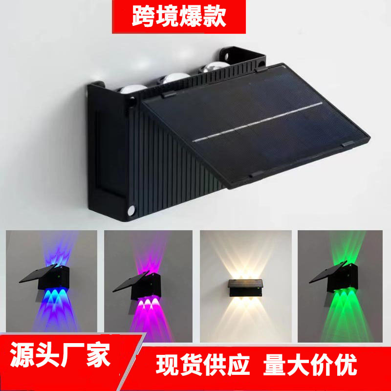 Lampu sorot cermin cembung, lampu dinding luar ruangan tahan air halaman taman vila atmosfer atas dan bawah bercahaya lampu cuci dinding tenaga surya kepala ganda