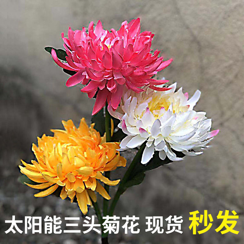 Lampu Taman dekorasi lanskap, lampu taman lanskap, lampu rumput tanah luar ruangan, lampu krisan 3 kepala tenaga surya, led baru lintas batas