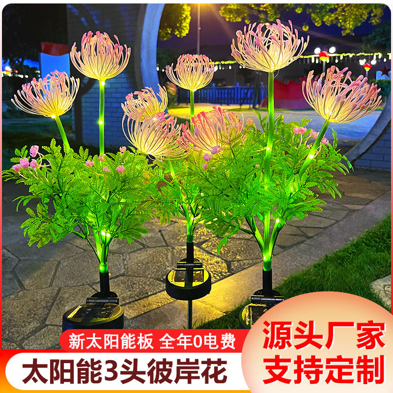 Lampu Selip Tanah Alang-alang Tenaga Surya Lampu Hias Serat Optik Tiga Kepala Tahan Air Luar Ruangan Lampu Surya Berkemah Liar