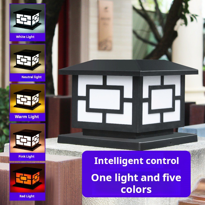 Lampu pilar LED tenaga surya, lampu taman induksi dinding luar ruangan tahan air untuk pintu rumah topi pilar Taman villa