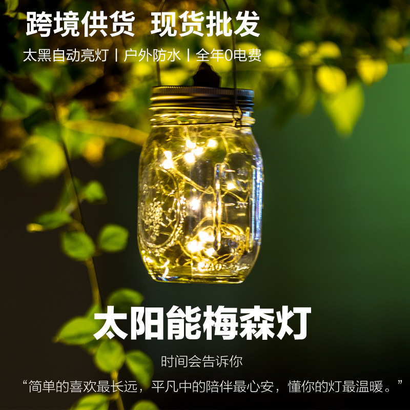 Lampu gantung botol Dekorasi halaman luar ruangan lampu Mason surya lintas batas lampu gantung gaya ins lampu retakan kaca harapan kreatif