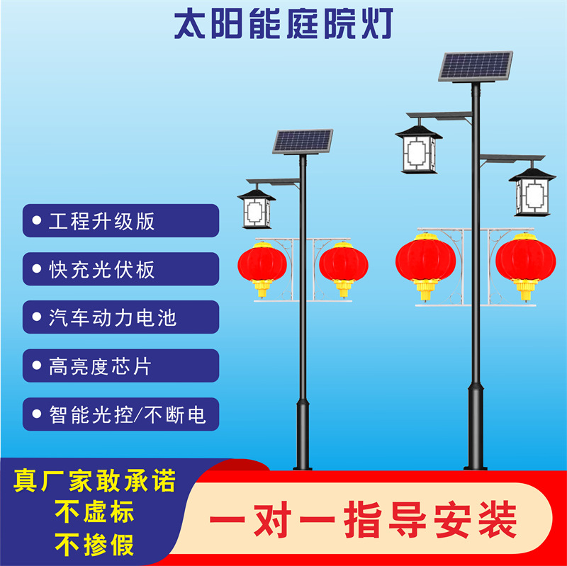 Lampu Taman Gaya Tiongkok Antik Lampu Pemandangan 3 Meter Lampu Taman Gaya Kuno Lentera Kepala Ganda Taman LED Lampu Surya