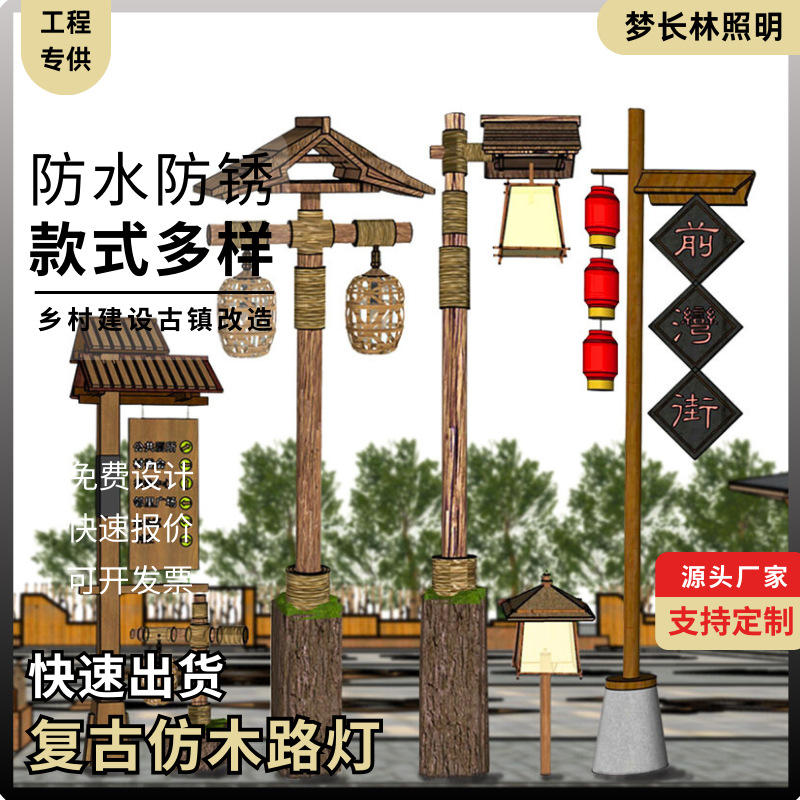 Lampu Jalan butiran kayu antik luar ruangan, lampu taman lanskap B & B lampu jalan pedesaan kreatif luar ruangan budaya dan luar ruangan