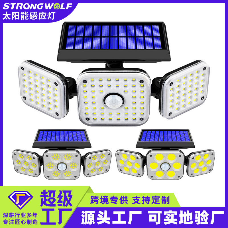 Pasokan pabrik lampu dinding tenaga surya baru, tiga kepala luar ruangan tahan air induksi tubuh manusia halaman pencahayaan dinding lampu jalan