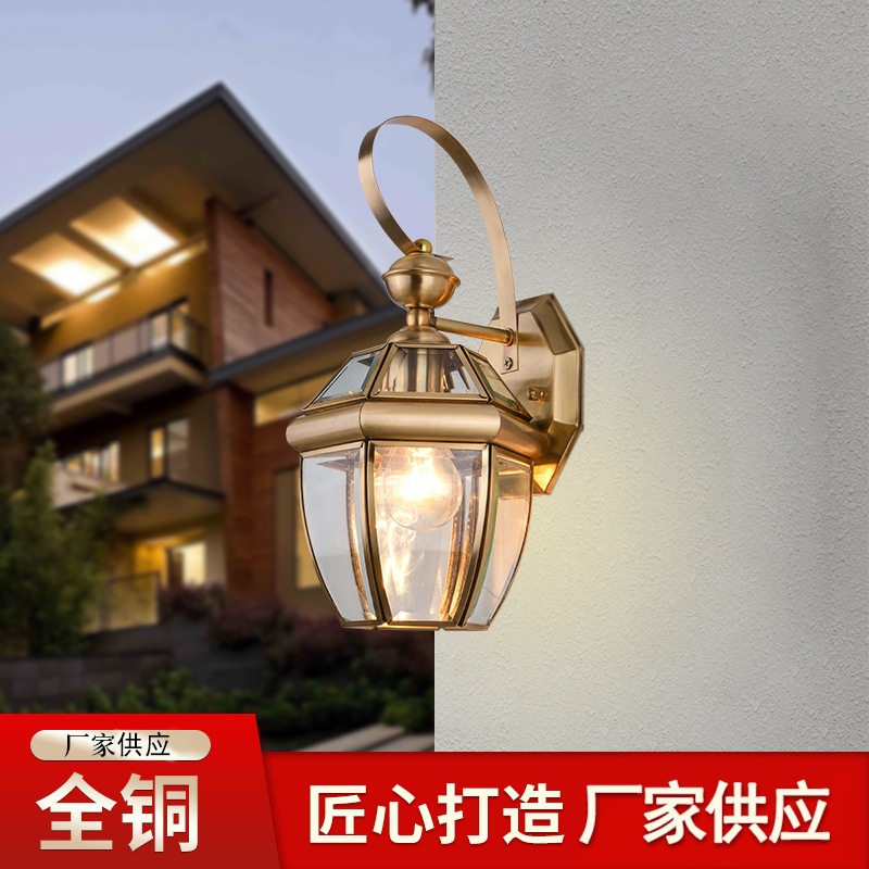 Lampu dinding balkon tahan air luar ruangan tembaga lampu dinding dekorasi eksterior ruang koridor lorong lampu taman taman taman gaya Eropa villa