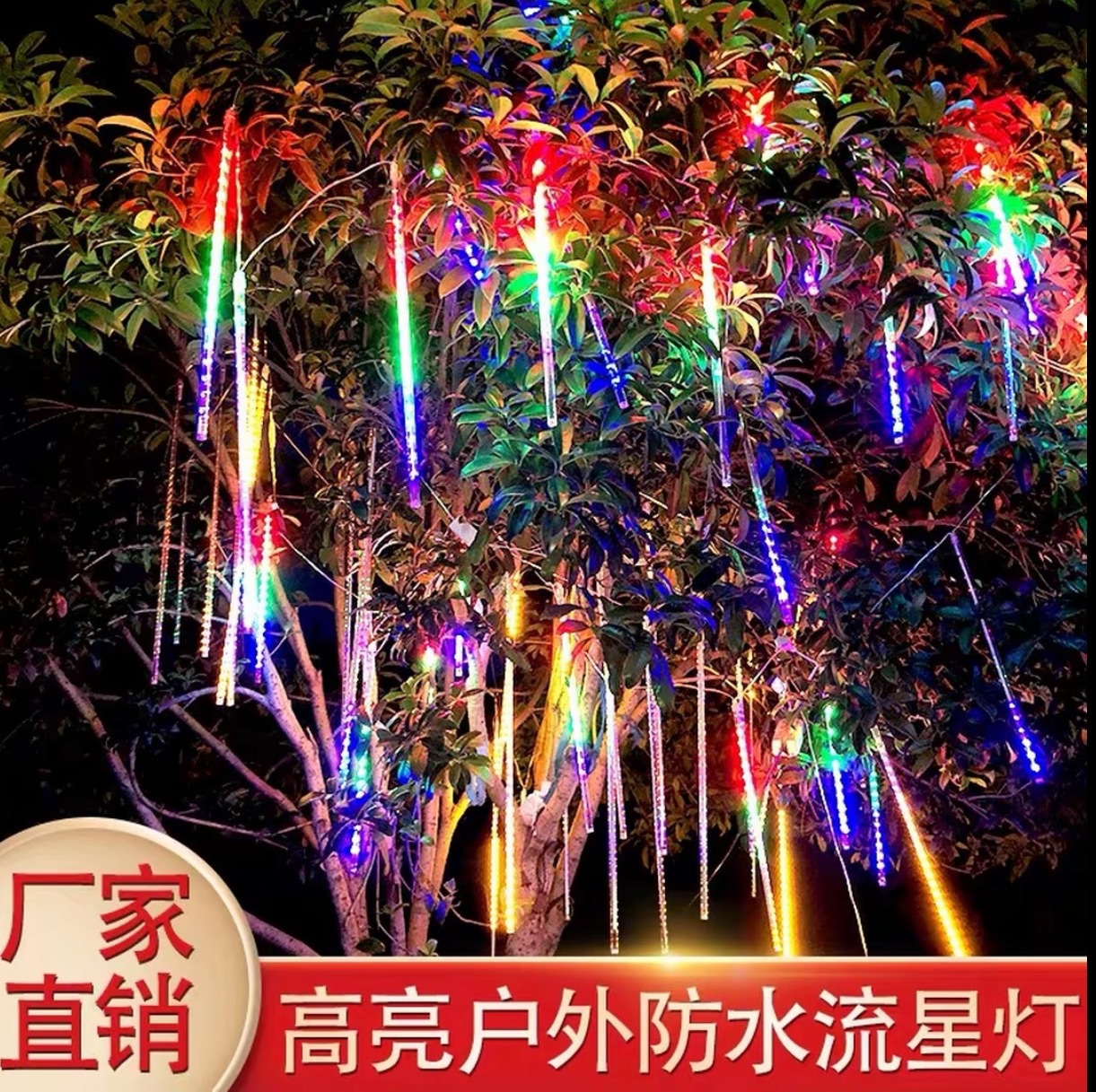 String Lampu Hujan Meteor LED Surya Luar Ruangan Tahan Air Jalan Festival Terang Lampu Hias Pohon Gantung Halaman