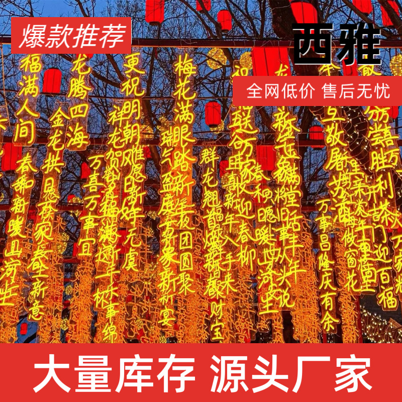 Lampu puisi kuno luar ruangan tahan air taman jalan lampu kata bercahaya pohon mencerahkan lanskap suasana budaya lampu tali lampu gantung