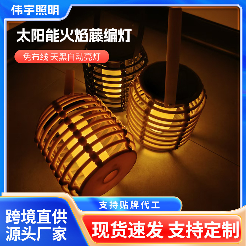 Lampu api tenaga surya, lampu rotan portabel, lampu tenaga surya, lampu taman luar ruangan, menyala secara otomatis setelah gelap, lampu suasana tahan air