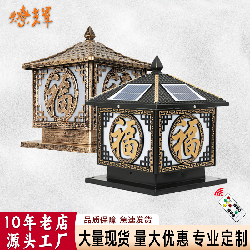 Lampu pilar surya lampu taman vila gaya Tiongkok, lampu dinding pilar pintu halaman lampu pilar