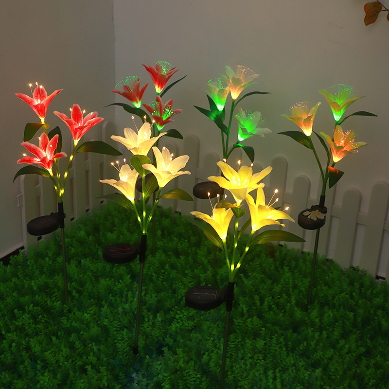 Lampu Bunga Simulasi Tanah Energi Surya Lampu Bunga Lily Rumput Hiasan Halaman Lintas Batas Lampu Tahan Air Luar Ruangan LED