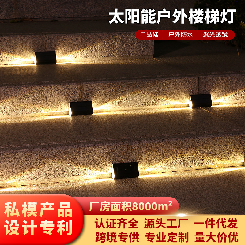 Lampu taman luar ruangan tenaga surya, lampu langkah pedal tangga tahan air dekorasi pagar dinding taman