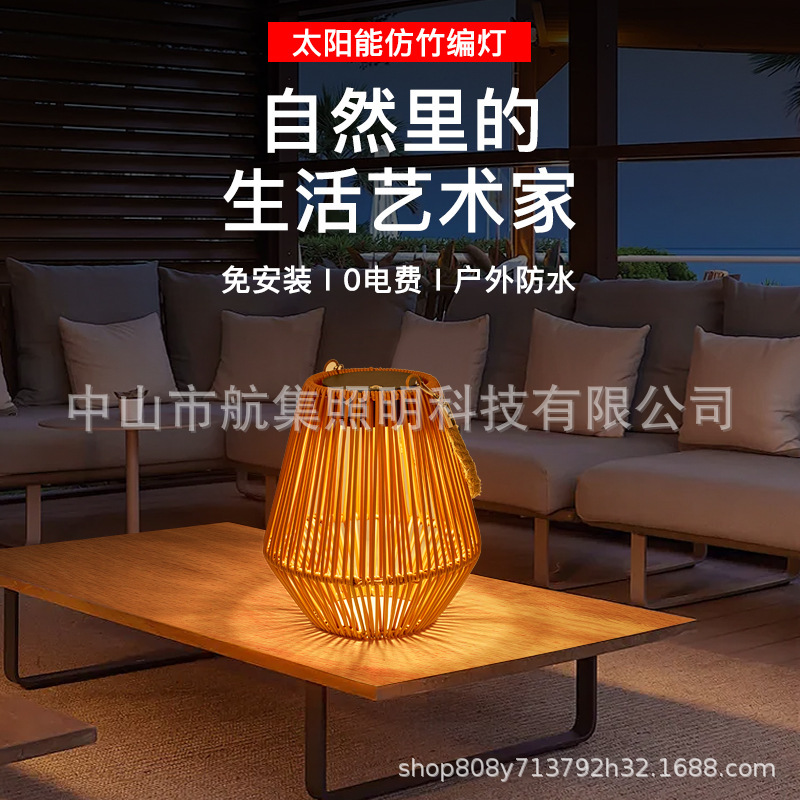 Lampu taman anyaman rotan tahan air bertenaga surya, lampu meja dekoratif isi ulang USB, lentera retro, lampu gantung atmosfer