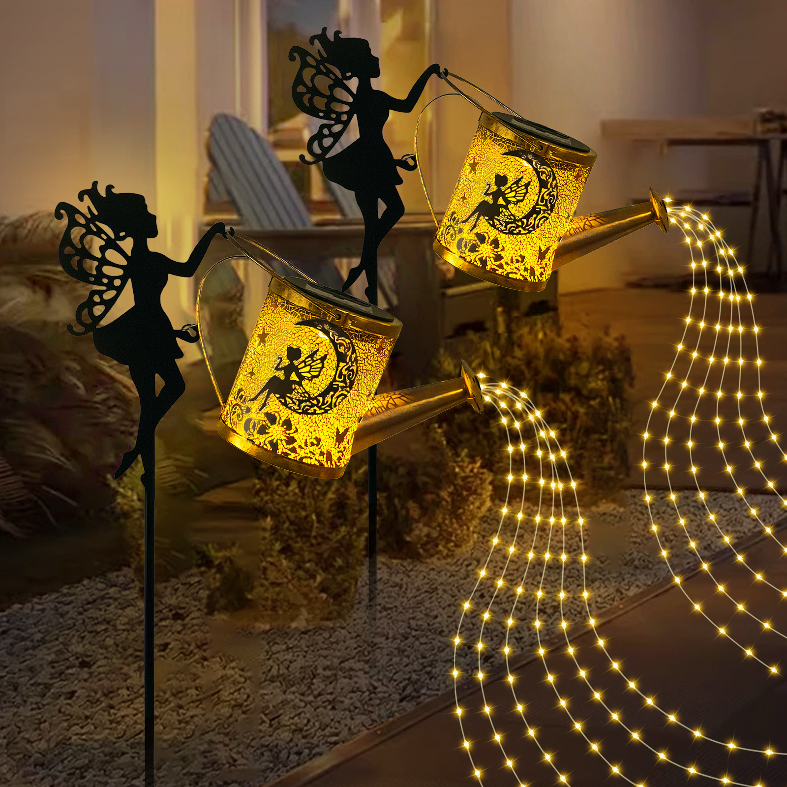 Amazon Lampu Ketel Malaikat Taman Surya Lampu Lanskap Luar Ruangan Lampu Rumput Berongga Besi Ketel Peri Bunga
